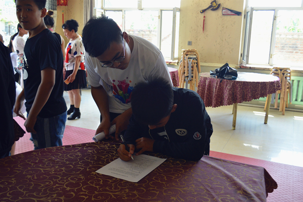 本次调研以发放并回收调研问卷为载体,通过街头发放,当场填写回收的方式共发放留守儿童调研问卷122张,回收114张,有效回收率93.4%,达到有效问卷标准,主要发放对象为当地儿童及老师。晚上,彩虹服务队队员对调查问卷进行了回收整理,集体讨论了调查问卷中反应的问题并撰写调研报告。