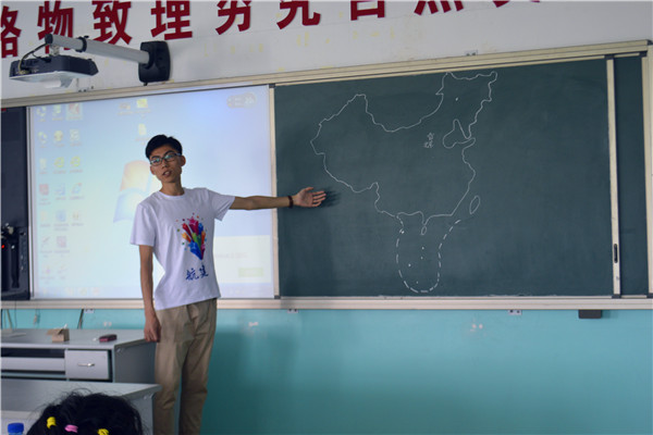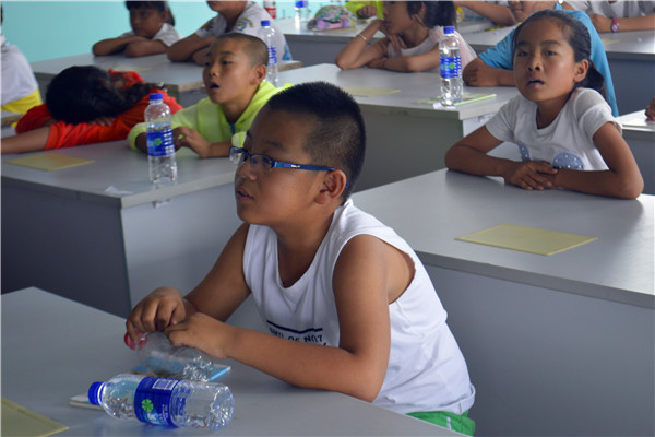 7月12日上午8时航建学院三下乡彩虹服务队在七棵树镇中心学校开展了爱国教育课。