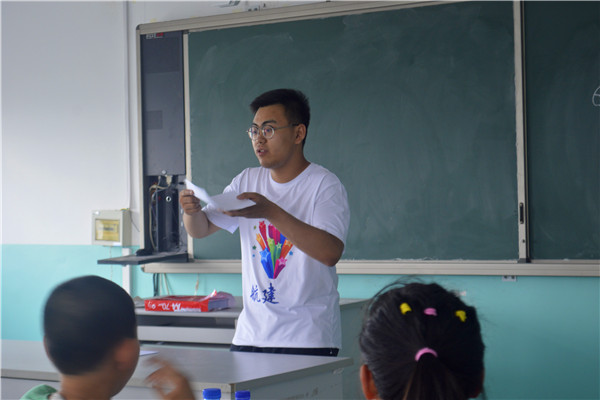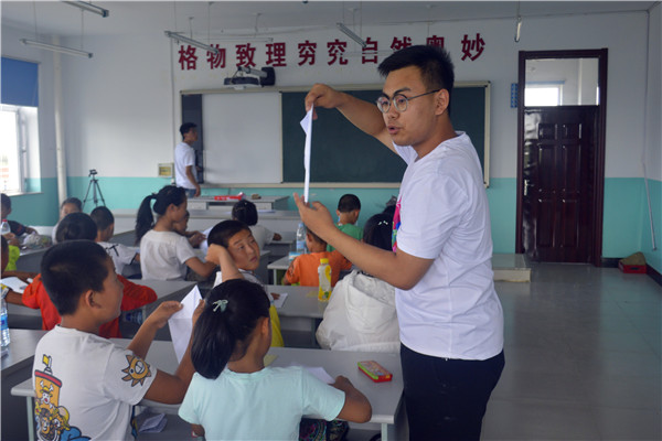 7月13日上午8时整,航建学院三下乡彩虹服务队开展“纸飞机”趣味课程,服务队队员钟坤宇担任主讲老师,全体服务队成员任助教老师。