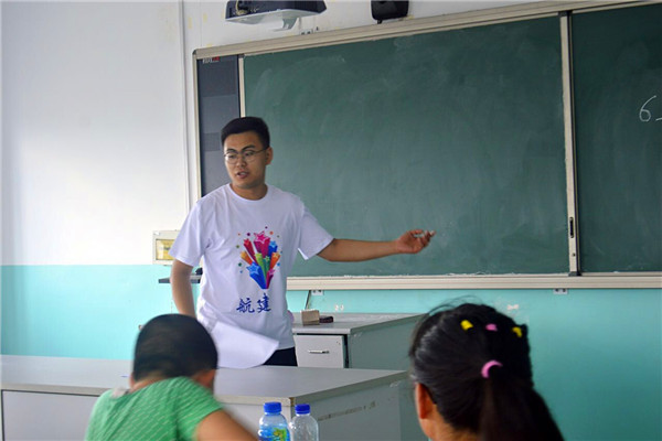 7月13日上午8时整,航建学院三下乡彩虹服务队在七棵树中心学校开展航天知识科普课,服务队队员钟坤宇和李瑾担任主讲老师,全体服务队队员任助教老师。