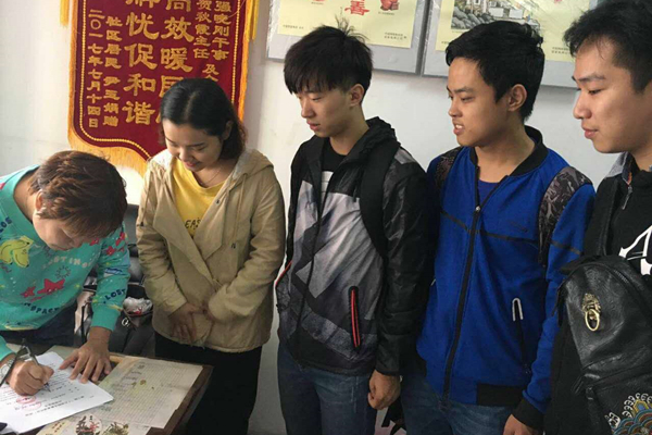 孙朋和同学们首先前往建平社区居委会进行交流。居委会对航建学院的长期无私奉献表示感谢并希望进一步加强交流合作。孙朋表示身为志愿者不仅深感自豪并且在活动中锻炼了自我,同时学习到了许多新知识,受益匪浅。双方就志愿者活动的长期进行交换了建议并签署“十万志愿者进社区的协议”。签署协议后,孙朋和同学们在社区进行清扫活动,为以后的志愿活动作出示范。