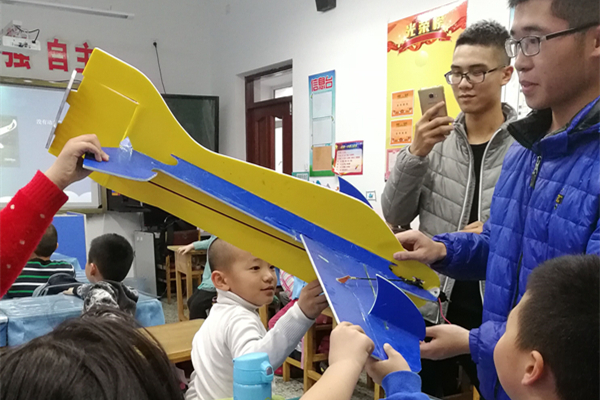 本次启航行动是针对建工小学3年1班学生的学习状况开设的课程,主题是“放飞梦想”,讲解关于航模的知识,并教小朋友们制作简单的航模。来到3年1班,志愿者们用精心准备的PPT和航模道具以及小实验向小朋友们讲解有关知识。孩子们坐在下面认真好奇地听着志愿者讲的每一句话,并与志愿者们积极踊跃地互动。