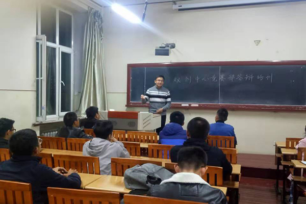 2018年10月27日晚9:00,航建学院双创中心竞赛部在十一号楼5010小教室进行校“五四杯”创新创业大赛的赛前答辩培训。本次培训由航建学院竞赛部部长庄至栋主持,副部长董瑞霖担任主讲人,航建学院竞赛部部员参加了本次培训。