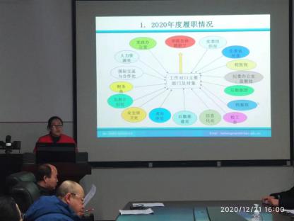 12月21日,按照文件要求,学院分别组织召开了2020年年度述职考核工作会议。全体教师、科级及科级以下人员、院长助理及基层学术组织负责人,结合岗位职责,就年度履职情况、自身工作中存在的不足及下一步努力方向,进行公开述职。经过个人述职、民主测评、组织考察等环节,各基层学术组织确定所属教职工的考核等级并报学院年度考核工作小组。院长助理及基层学术组织负责人在考核工作小组范围内述职并接受考核。