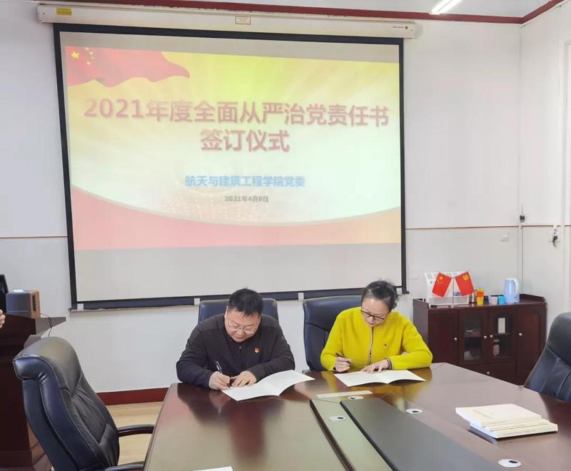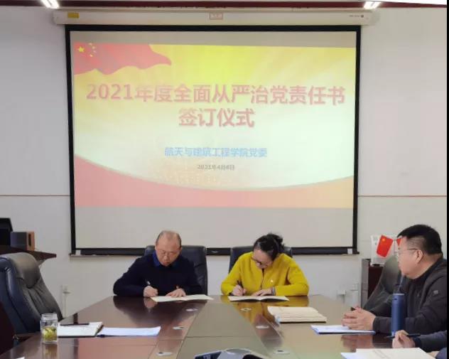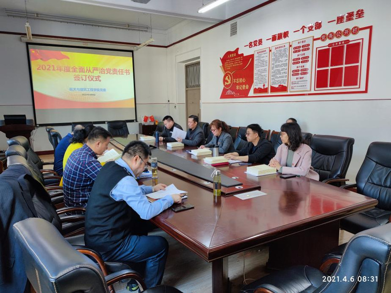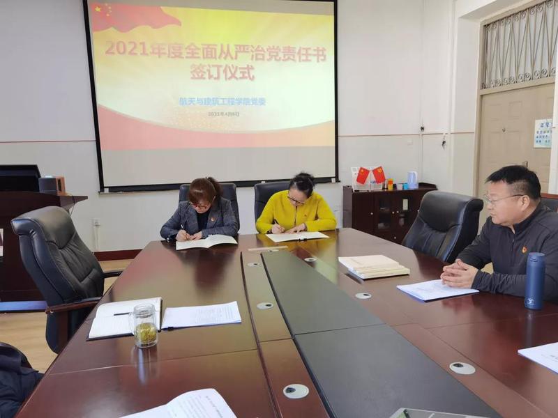 4月6日上午,学院党委在11#3067召开2021年度全面从严治党责任书签订仪式。学院领导班子成员和教工党支部书记参加会议。