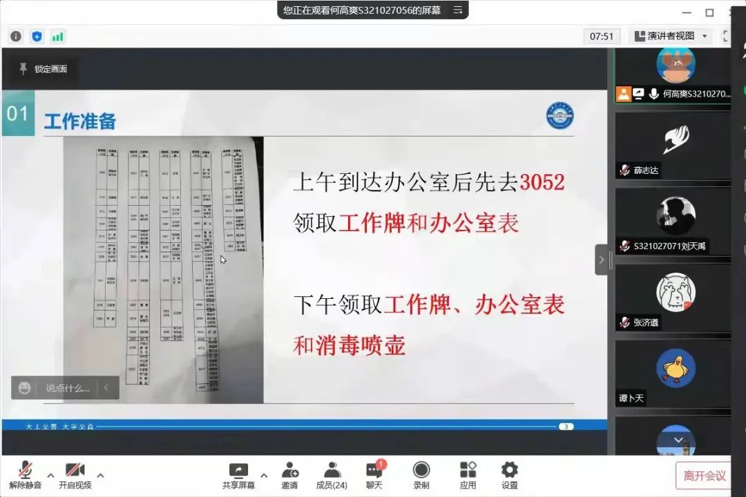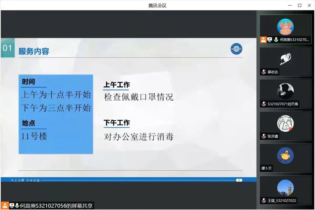 晚上9时,航建研究生会主席团成员何高爽通过线上会议召开疫情防控动员会,再次动员大家认真进行疫情防控工作,共同营造健康良好的工作学习环境。