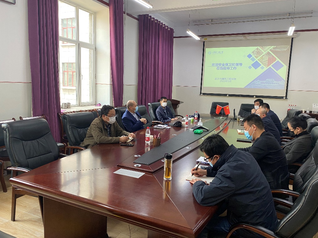 安全保卫处处长郭践识对学校近期安全检查工作安排和要求进行了全面解读,安全保卫处副处长徐世同结合学院实验室具体情况提出了相关意见和建议。