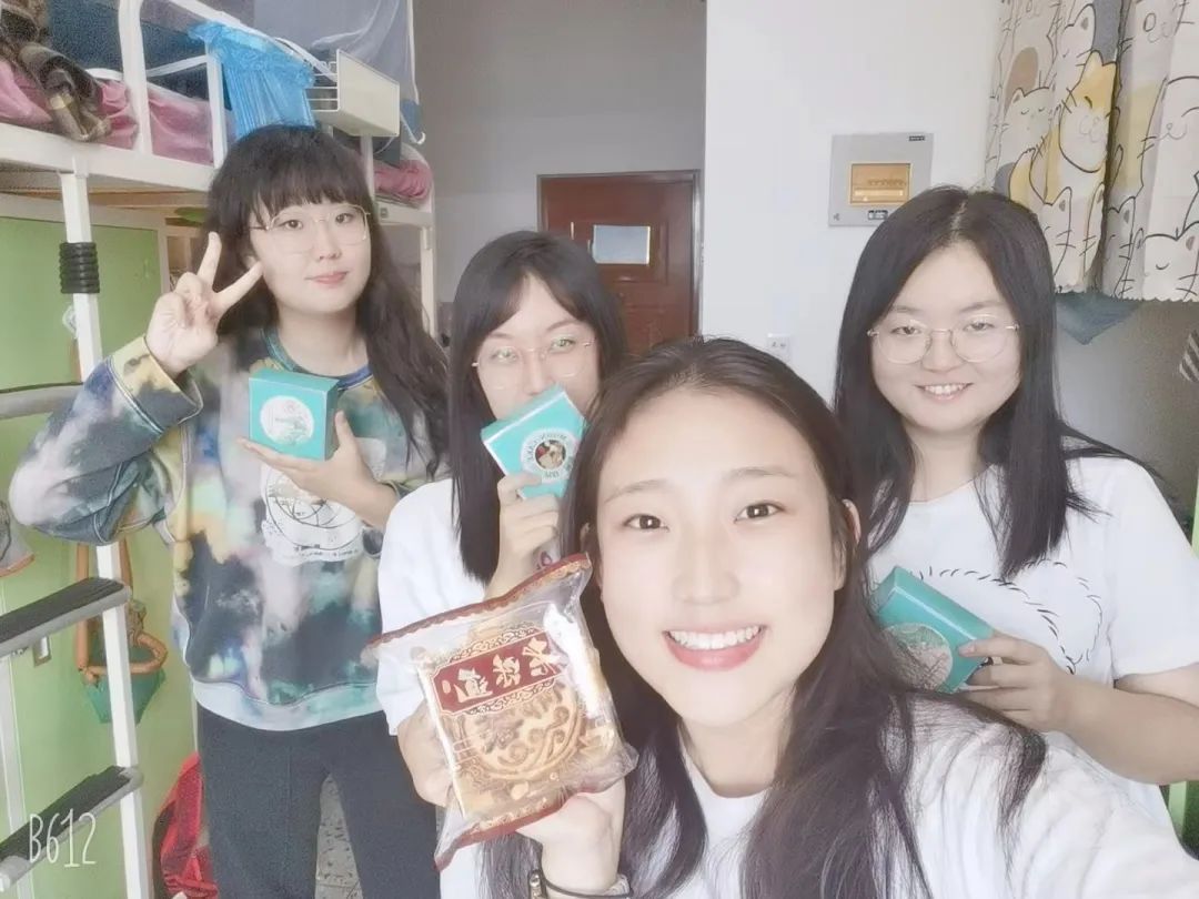 月饼,是花好月圆之时最好的礼物。2022级新生纷纷合影留念,发布朋友圈分享愉快的心情。