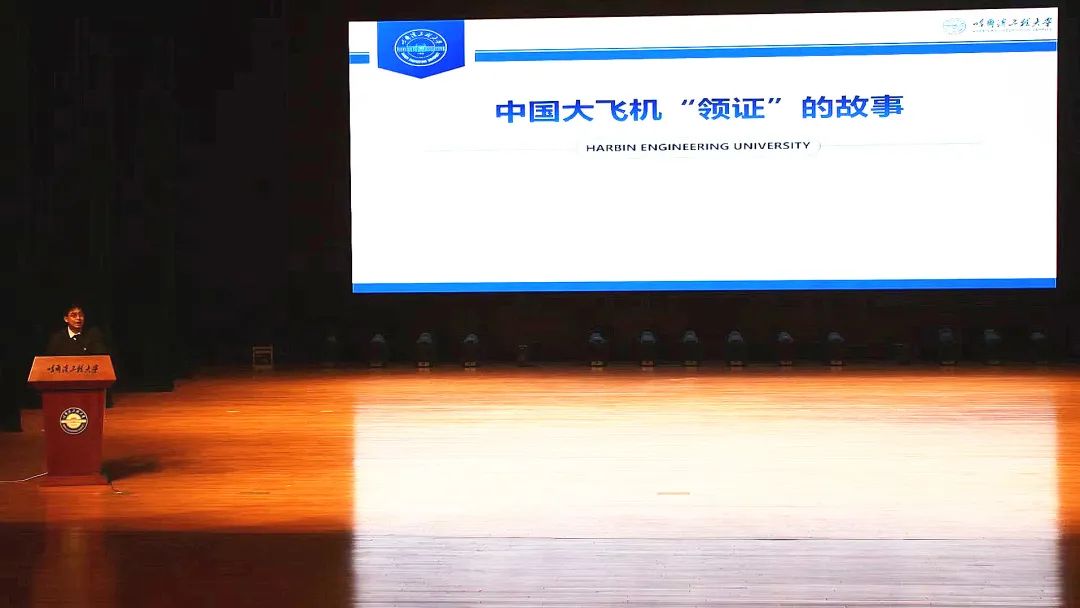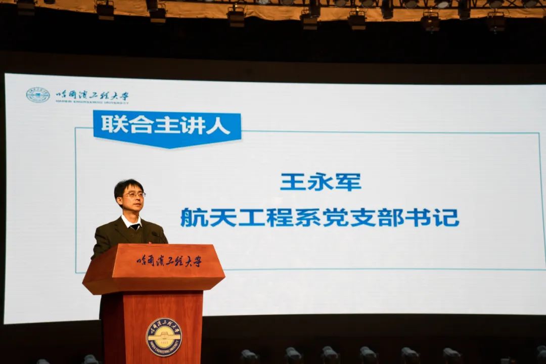 航天工程系党支部书记王永军,讲述的是中国大飞机“领证”的故事。他通过国产商用大飞机C919“领证”道路的讲述,分析了国产大飞机的“卡脖子”问题,告诉同学们:“只有认识到差距,才有可能弥补差距!”同时他建议新生们把我国35项卡脖子技术的图片贴到自己床头案边,化为警钟时刻提醒自己破解卡脖子技术,是工程学子的责任,是航建学子的责任,是''的责任!他寄语航建学子:“想要做到真正的‘天长地久’,需要我们一代又一代航空航天人不懈的努力!”