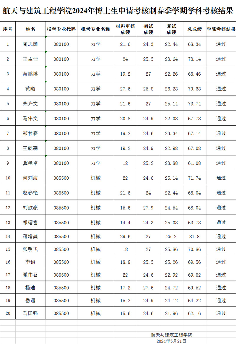 OK138太阳集团2024年博士生申请考核制春季学期学科考核结果