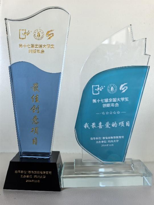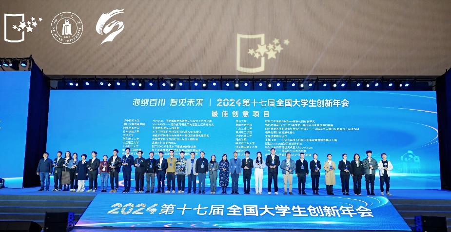 2024年11月8日-10日,由教育部指导,“国创计划”秘书处和四川大学共同主办的第十七届全国大学生创新年会在四川大学江安校区举行。本届年会以“海纳百川 智见未来”为主题,共收到全国部属高校和地方教育主管部门推荐项目1006项,最终遴选出学术论文200篇、改革成果展示项目250项、创业推介项目60项,共计510项成果入选年会。其中入围的250项改革成果展示项目中会评选出20项“最喜爱项目奖”和20项“最佳创意奖”