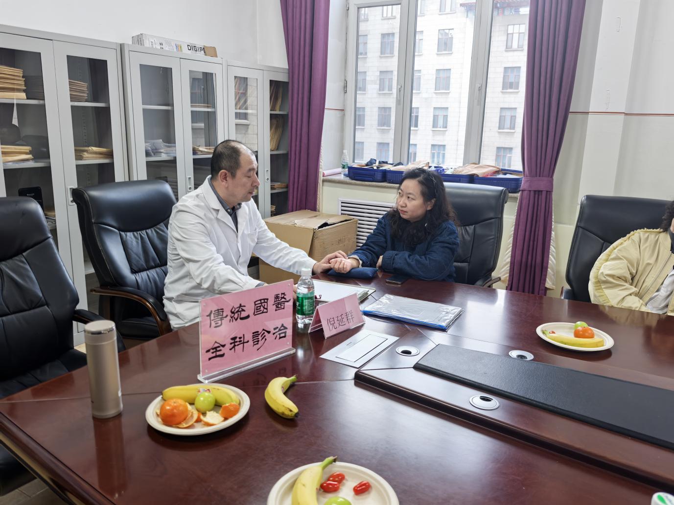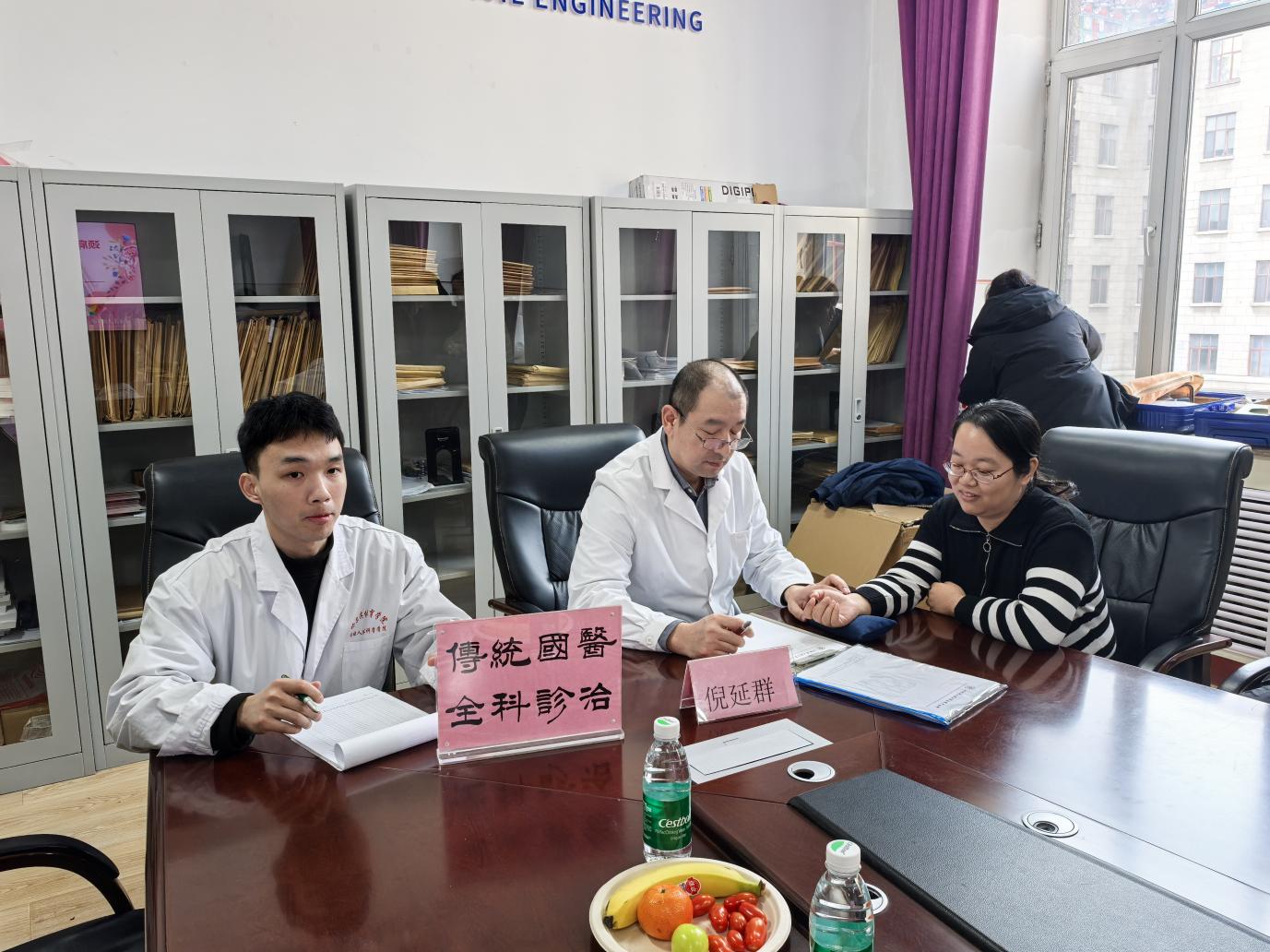 诊疗现场,中医科的医生们运用专业手法,为每一位前来咨询的女教职工进行颈肩按摩,耐心解答各种疑问,通过传统中医的把脉诊断,了解女教职工的身体气血、脏腑功能等状况,并针对不同症状给出个性化的建议。