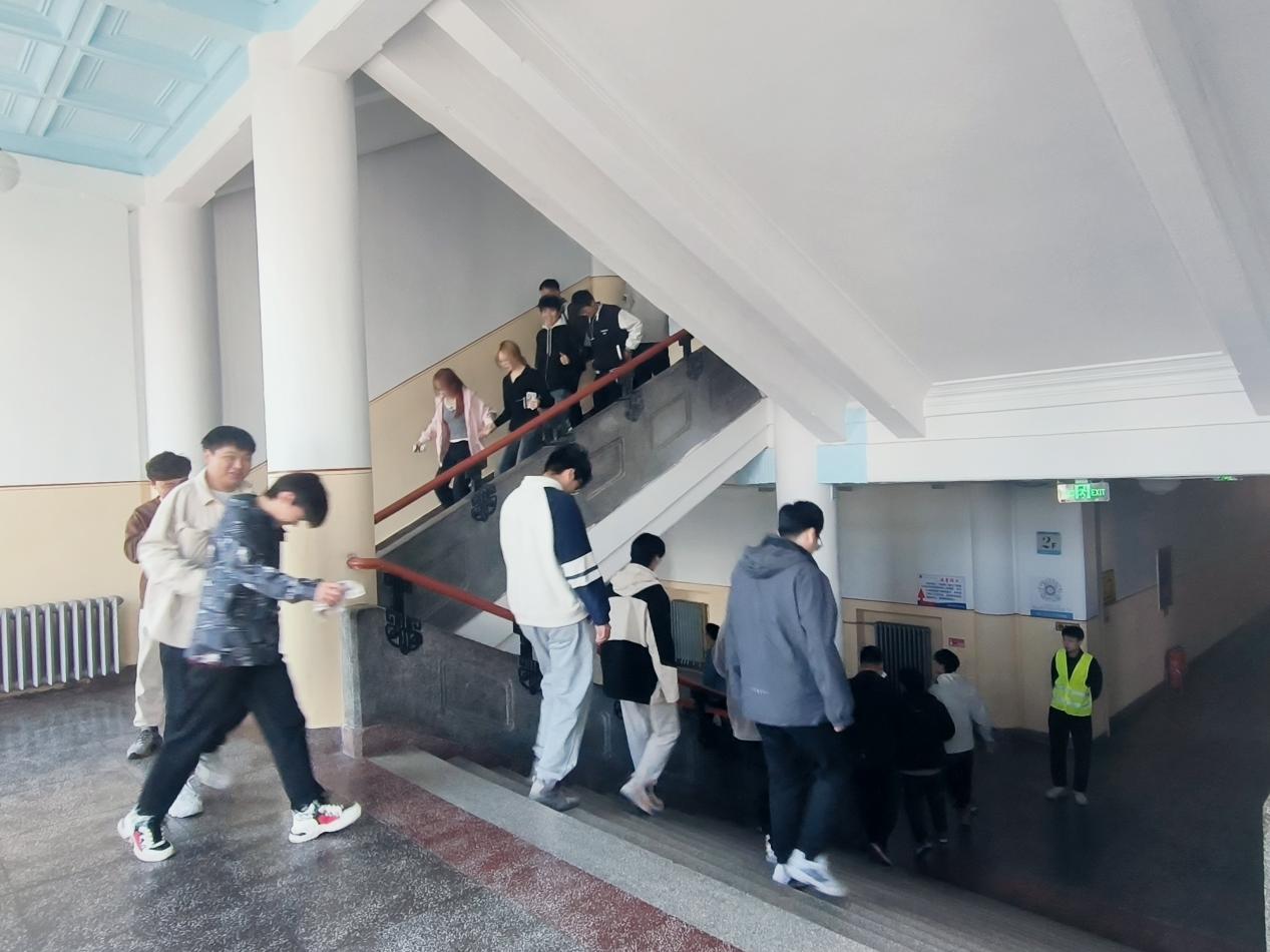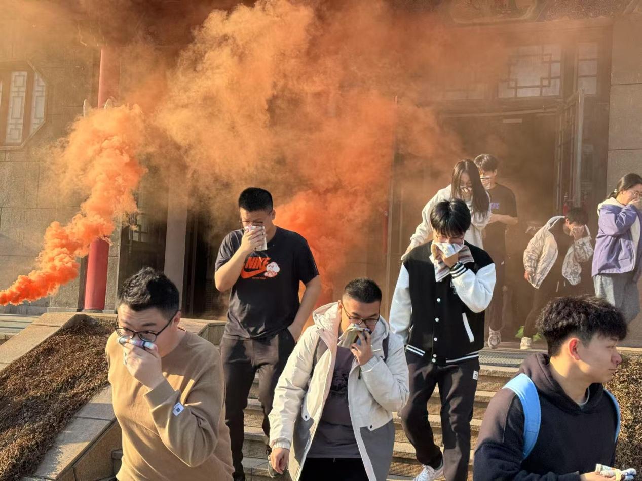 随后进入实战演练环节,警报声响起后,消防疏散员迅速到位,模拟浓烟环境下,引导师生用湿毛巾捂住口鼻,沿安全通道低姿弯腰、单列靠右有序撤离到指定区域