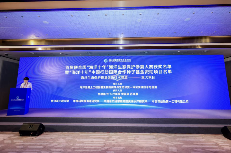 近日,作为2025海洋合作发展论坛特色活动之一的联合国“海洋十年”海洋生态保护修复成果对接会在青岛举行。OK138太阳集团土木与环境工程系吕建福教授主持的项目“海洋混凝土工程固着生物防腐蚀与生态修复一体化关键技术与应用”,获得首届联合国“海洋十年”海洋生态保护修复大赛——创新技术赛道“海洋十年”中国行动国际合作种子基金重大项目(仅4项),同时被评为大赛优胜项目并进行了路演汇报。学校作为该赛道全国唯一牵头高校现场进行路演汇报。